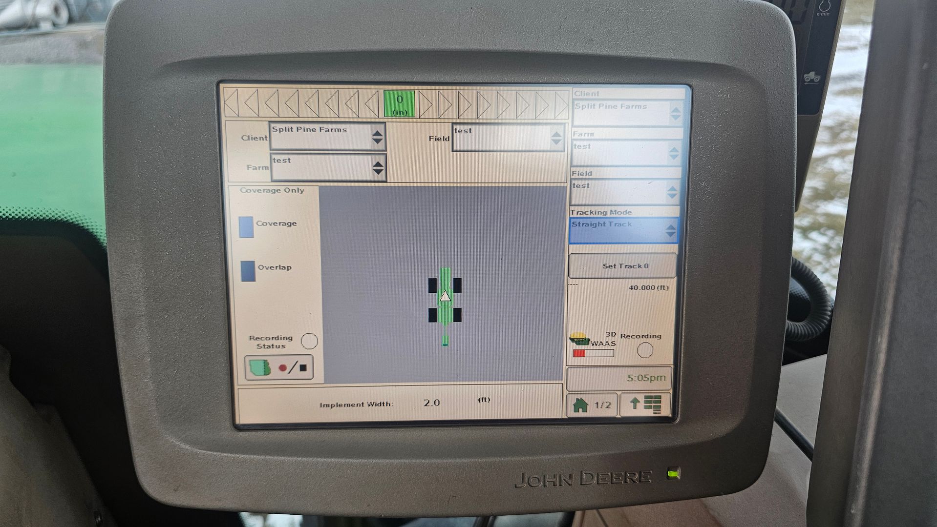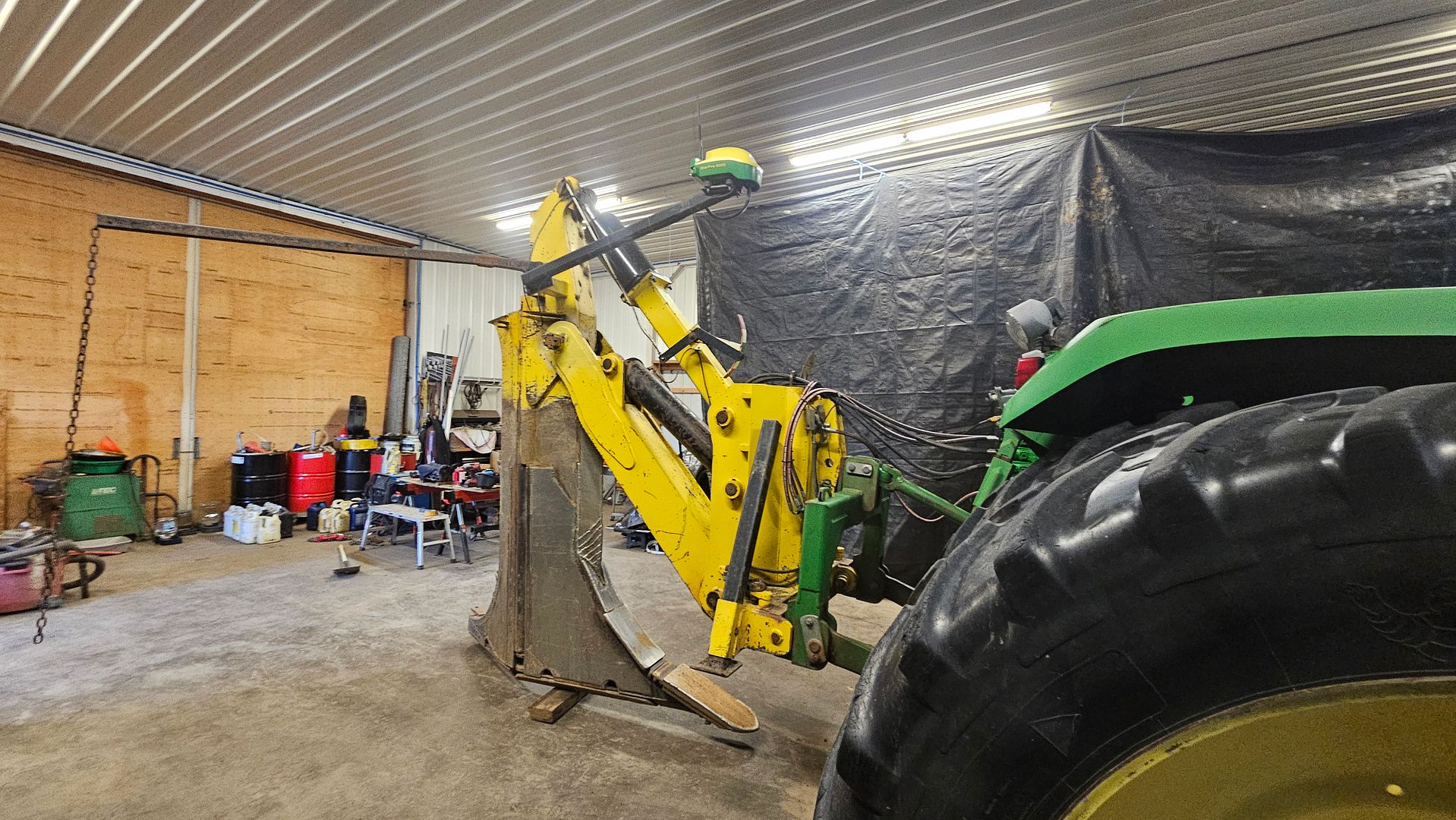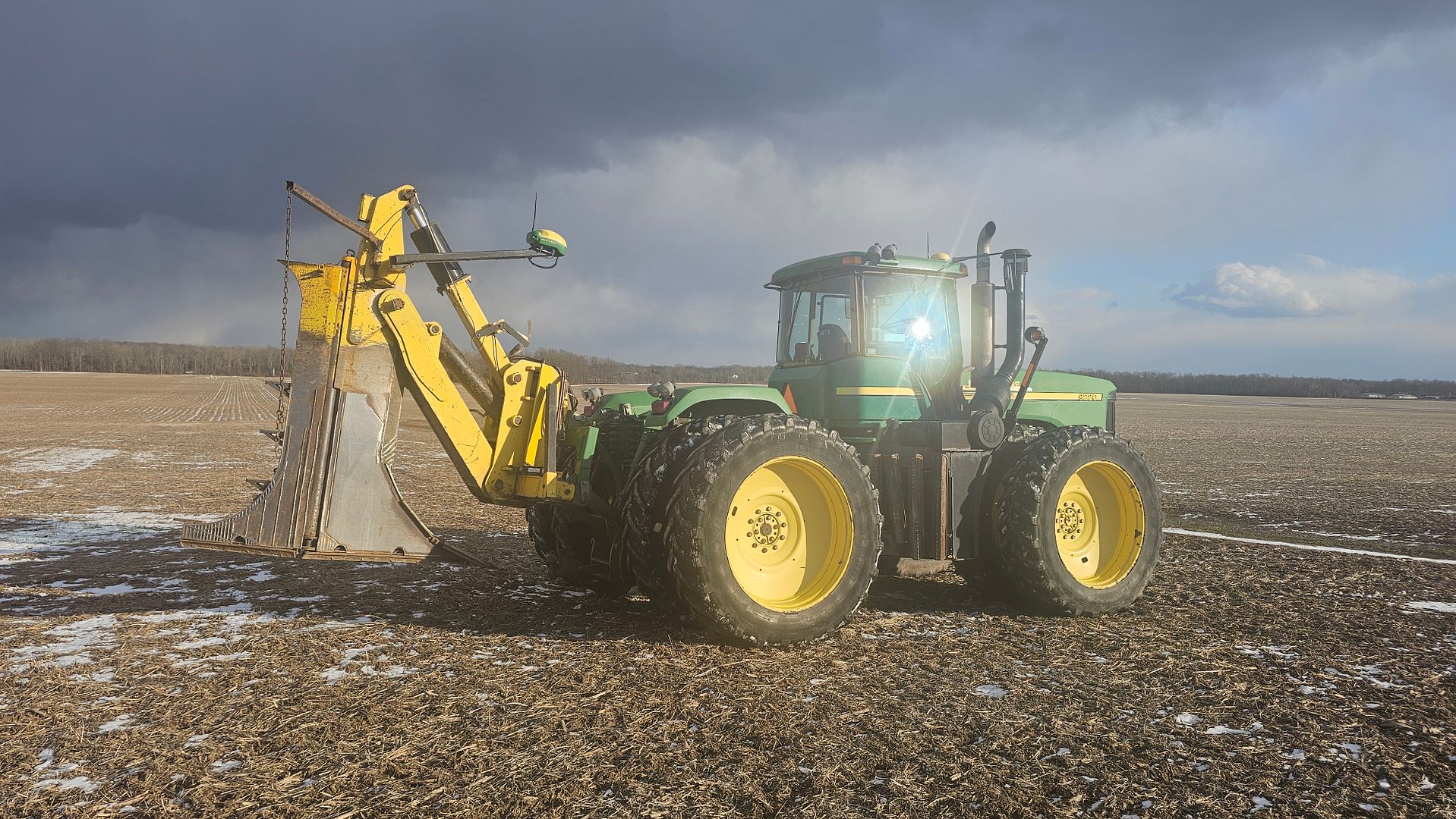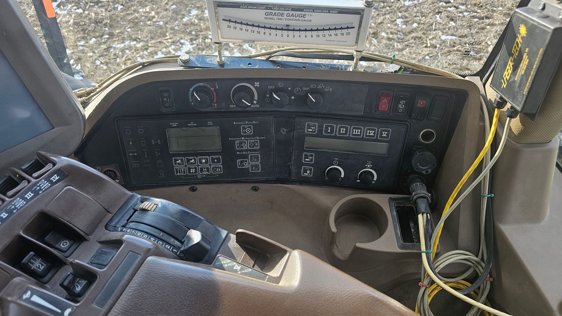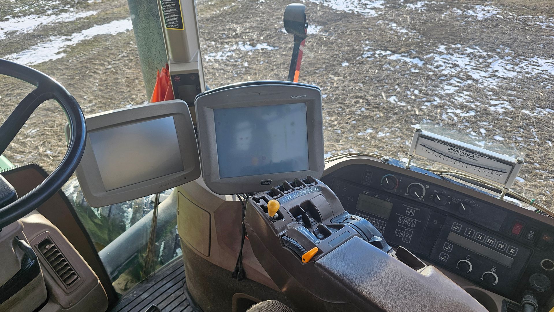 The GPS setup is based around the John Deere RTK system using a StarFire 3000 for the base station with SF1 & SF2 activations. The tractor has a StarFire 3000 on the cab for Autotrac use and a StarFire 6000 on the plow for grade control and tracking use by the aGPS computer. All 3 receivers have RTK radios for communication between the base station & the tractor mounted receivers operating on the 900MHz frequency.
